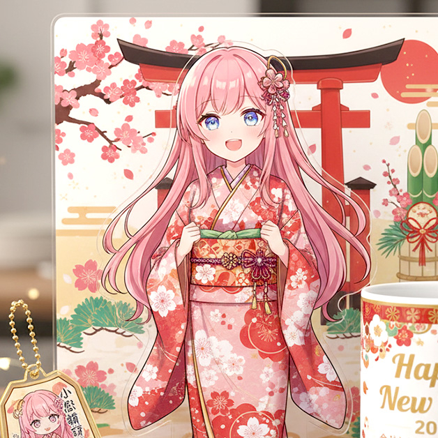 オリジナルメッセージで作れる新年向けアクリルキーホルダー。